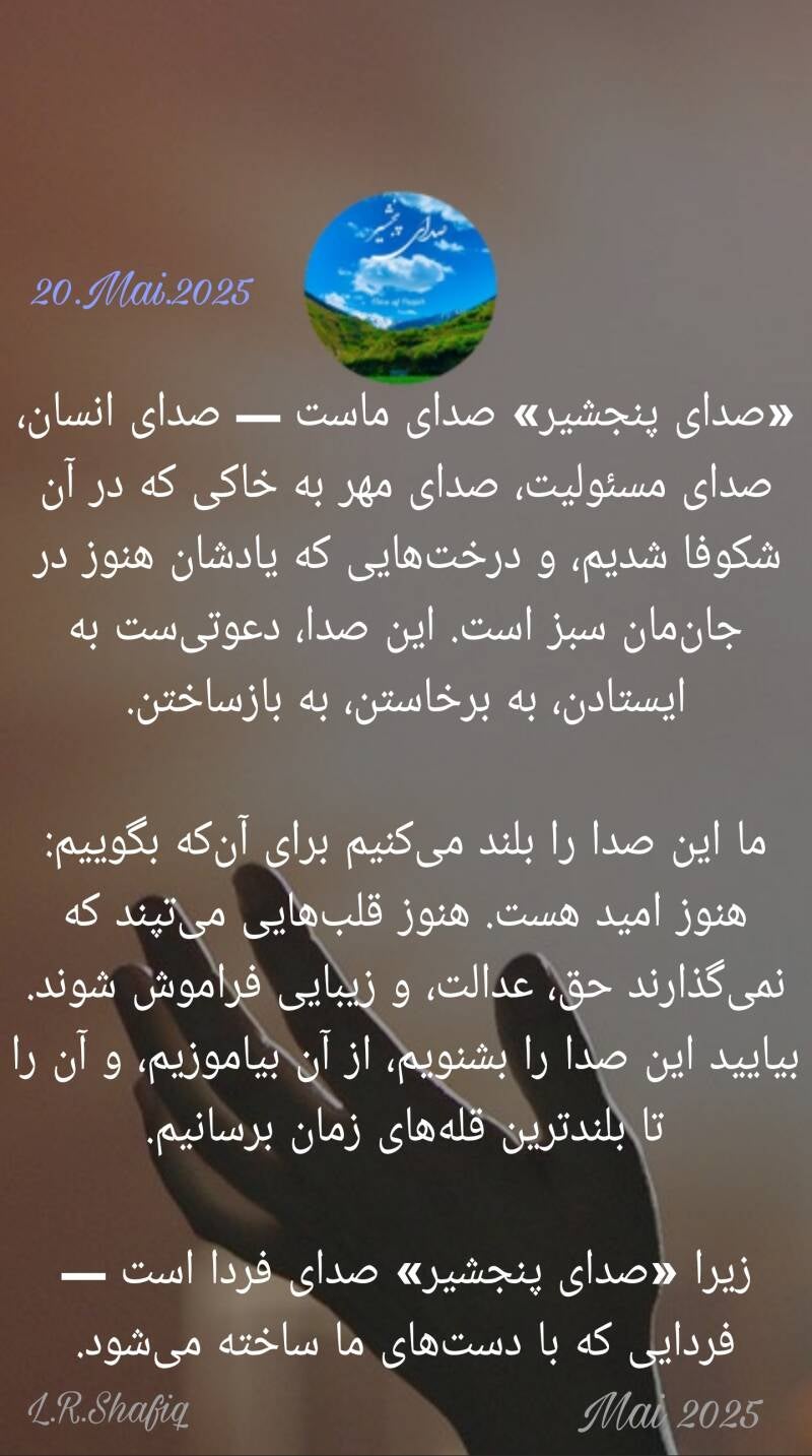 این صدا، صدای پنجشیر بود. صدای مردمی که هیچ هیولایی را توان خاموشکردنشان نیست. مردمی که آوازشان نه از گلو، بل از ژرفای جان و ریشههای هزار ساله برمیخیزد. این صدا، صدای زندگی شرافتمندانه، صدای عدالت و آزادگیست
